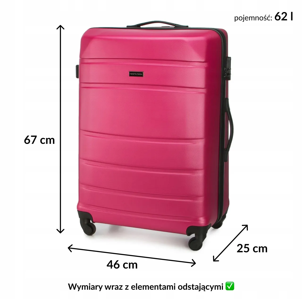 - Stylowe wzornictwo dostępne w różnych kolorach i kształtach, co pozwala na wybór walizki zgodnie z indywidualnym gustem.